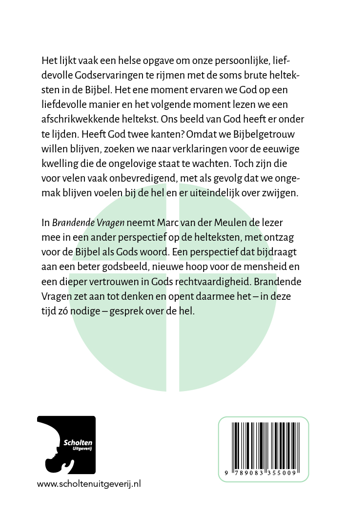 In ‘Brandende Vragen’ neemt Marc van der Meulen de lezer mee in een ander perspectief op de helteksten, met ontzag voor de Bijbel als Gods woord. Een perspectief dat bijdraagt aan een beter godsbeeld, nieuwe hoop voor de mensheid en een dieper vertrouwen in Gods rechtvaardigheid. Brandende Vragen zet aan tot denken en opent daarmee het – in deze tijd zó nodige – eerlijke gesprek over de hel.