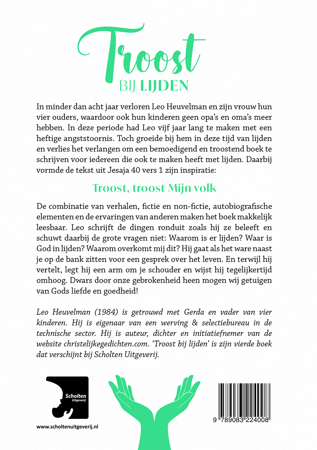In minder dan acht jaar tijd verloren Leo Heuvelman en zijn vrouw hun vier ouders, waardoor ook hun kinderen geen opa’s en oma’s meer hadden. Het had diepe impact en bracht bij Leo een heftige angststoornis teweeg, die zijn leven vijf jaar lang tot een grote kwelling maakte. Toch groeide in deze tijd van lijden en verlies bij Leo het verlangen om een troostend boek te schrijven voor anderen die net als hij te maken hadden met lijden. Daarbij vormde de tekst uit Jesaja 40 vers 1 zijn inspiratie: Troost, troost Mijn volk.