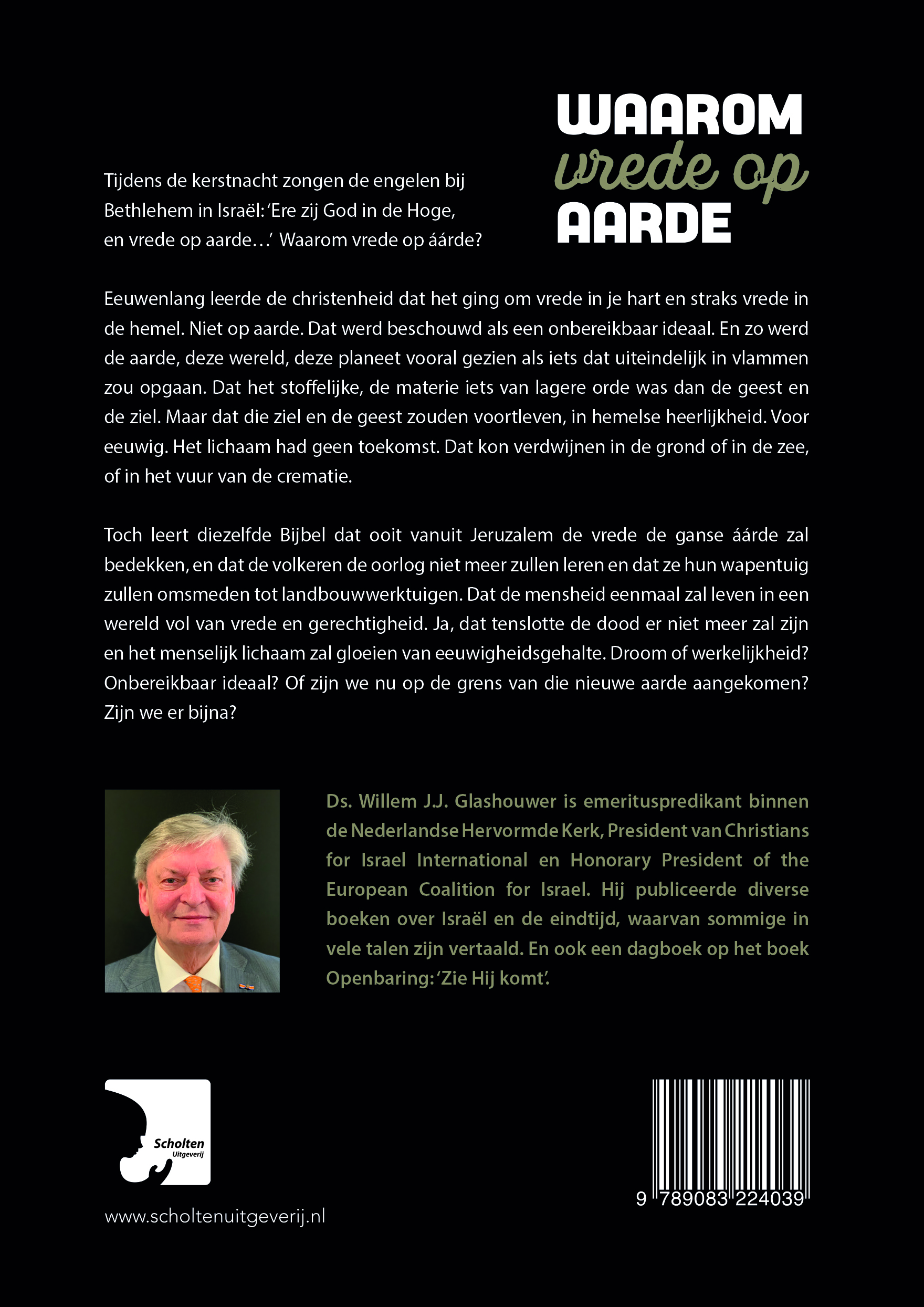 Toch leert diezelfde Bijbel dat ooit vanuit Jeruzalem vrede de ganse áárde zal bedekken en dat volkeren de oorlog niet meer zullen leren en dat ze hun wapentuig zullen omsmeden tot landbouwwerktuigen. Dat de mensheid eenmaal zal leven in een wereld vol van vrede en gerechtigheid. Ja, dat tenslotte de dood er niet meer zal zijn en het menselijk lichaam zal gloeien van eeuwigheidsgehalte. Droom of werkelijkheid? Onbereikbaar ideaal? Of zijn we inmiddels op de grens van die nieuwe aarde aangekomen? Zijn we er bijna?