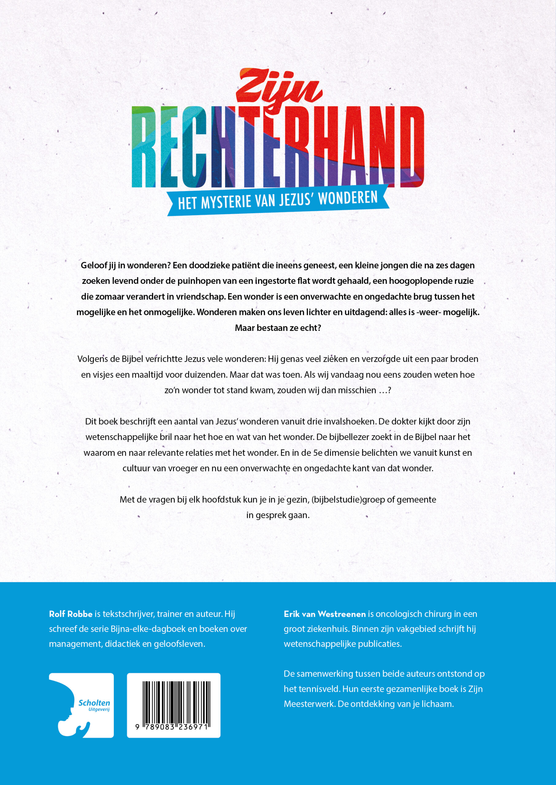 Volgens de Bijbel verrichtte Jezus vele wonderen: Hij genas veel zieken en verzorgde uit een paar broden en visjes een maaltijd voor duizenden. Dit boek beschrijft een aantal van Jezus’ wonderen vanuit drie invalshoeken. De dokter kijkt door zijn wetenschappelijke bril naar het hoe en wat van het wonder. De bijbellezer zoekt in de Bijbel naar het waarom en naar relevantie relaties met het wonder. En in de 5e dimensie belichten we vanuit kunst en cultuur van vroeger en nu een onverwachte en ongedachte kant van dat wonder.
